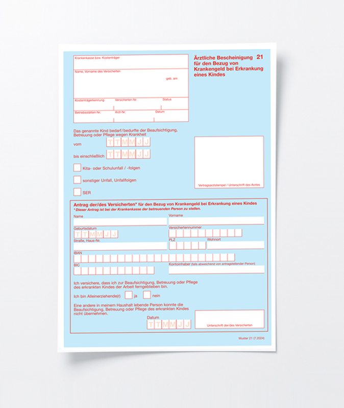 » » Muster 21 Ärztliche Bescheinigung für den Bezug von Krankengeld bei Erkrankung eines Kindes